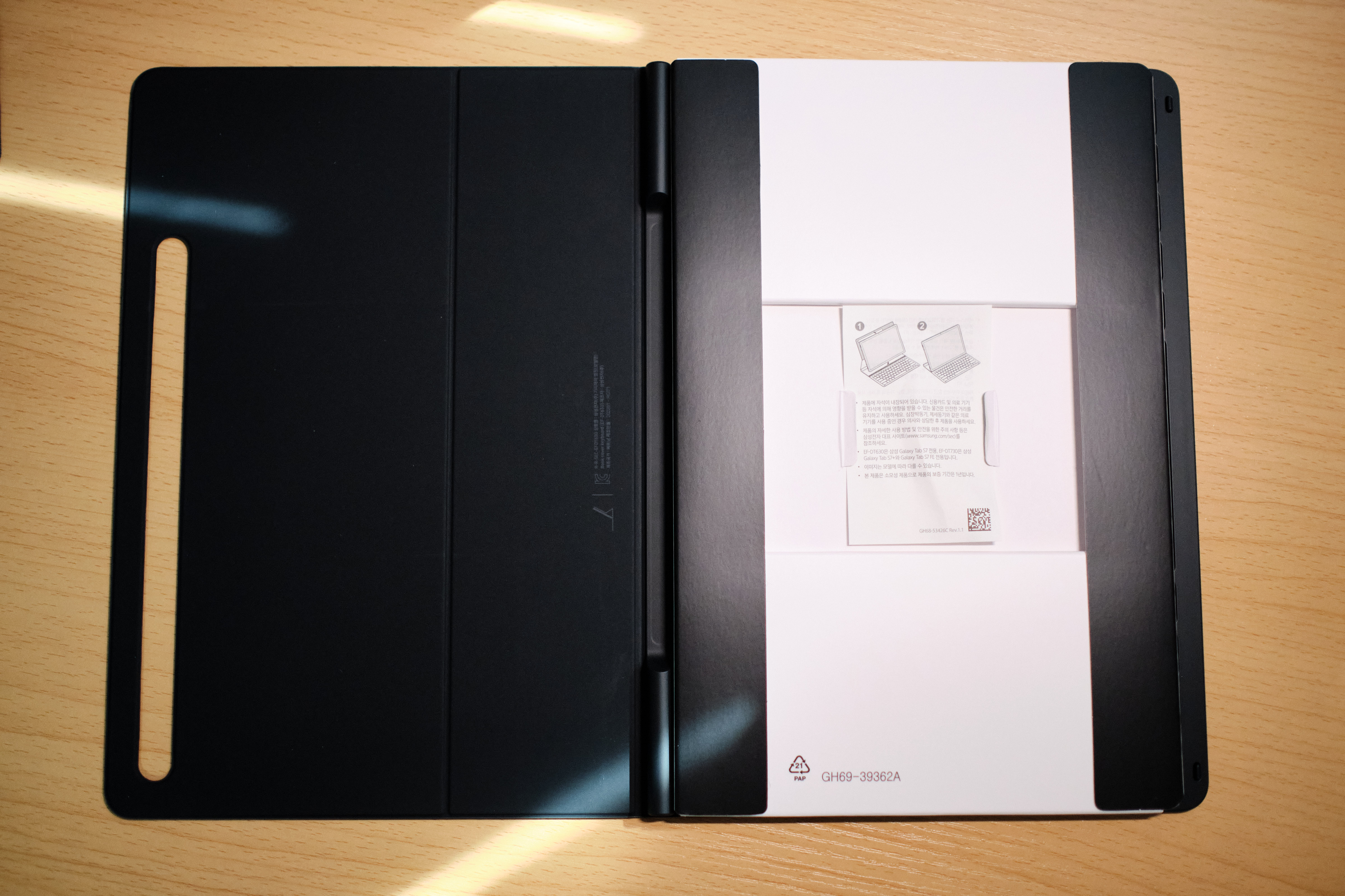 이 부분이 가장 놀란 부분인데 전에 쓰던 북커버와 전혀 무게 차이가 않나서 놀랬습니다. 아무래도 키보드가 있어서 무게가 늘었을 것이라 생각을 했는데 키보드도 매우 얇게 만들어 져서 그런지 정말 가볍습니다.