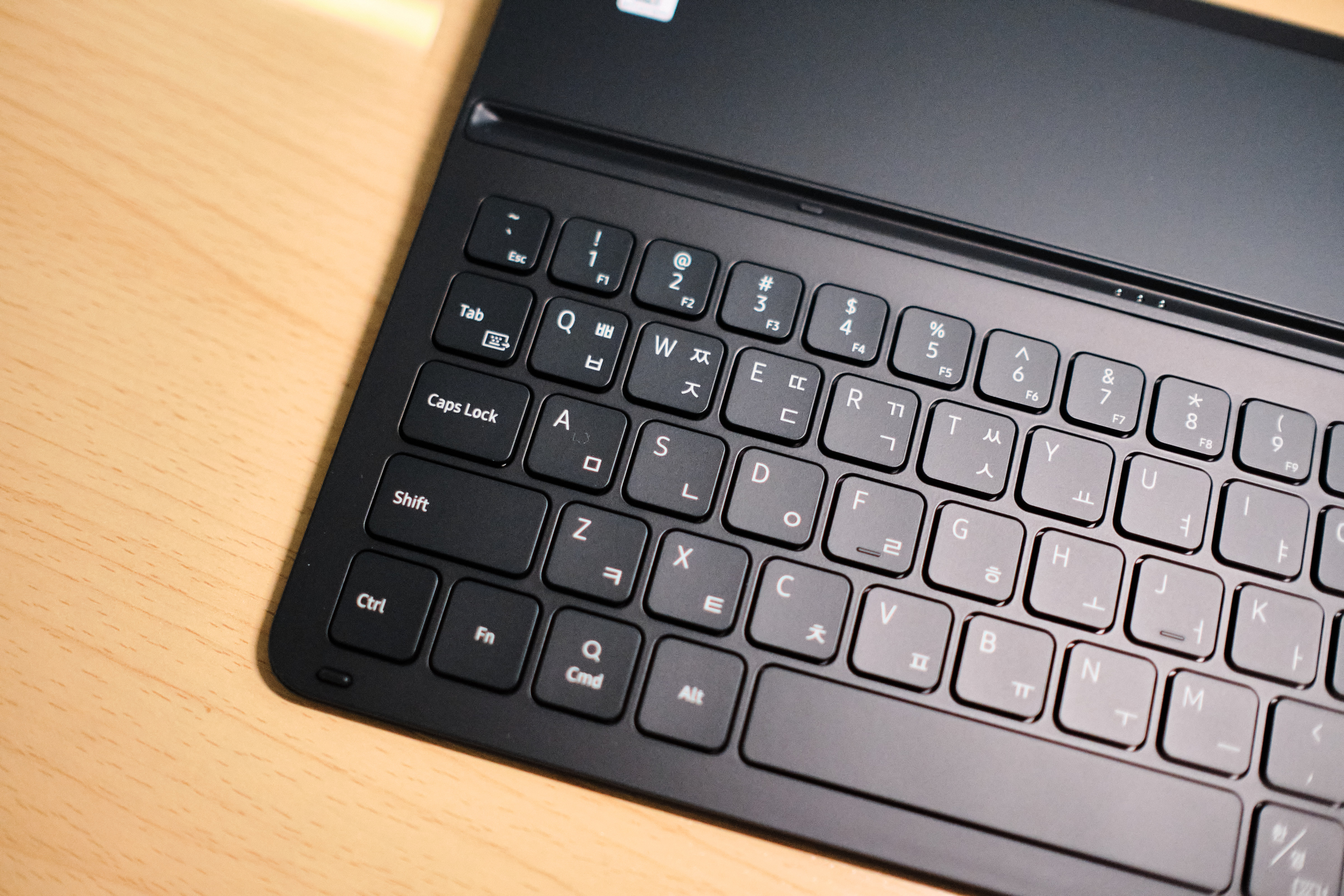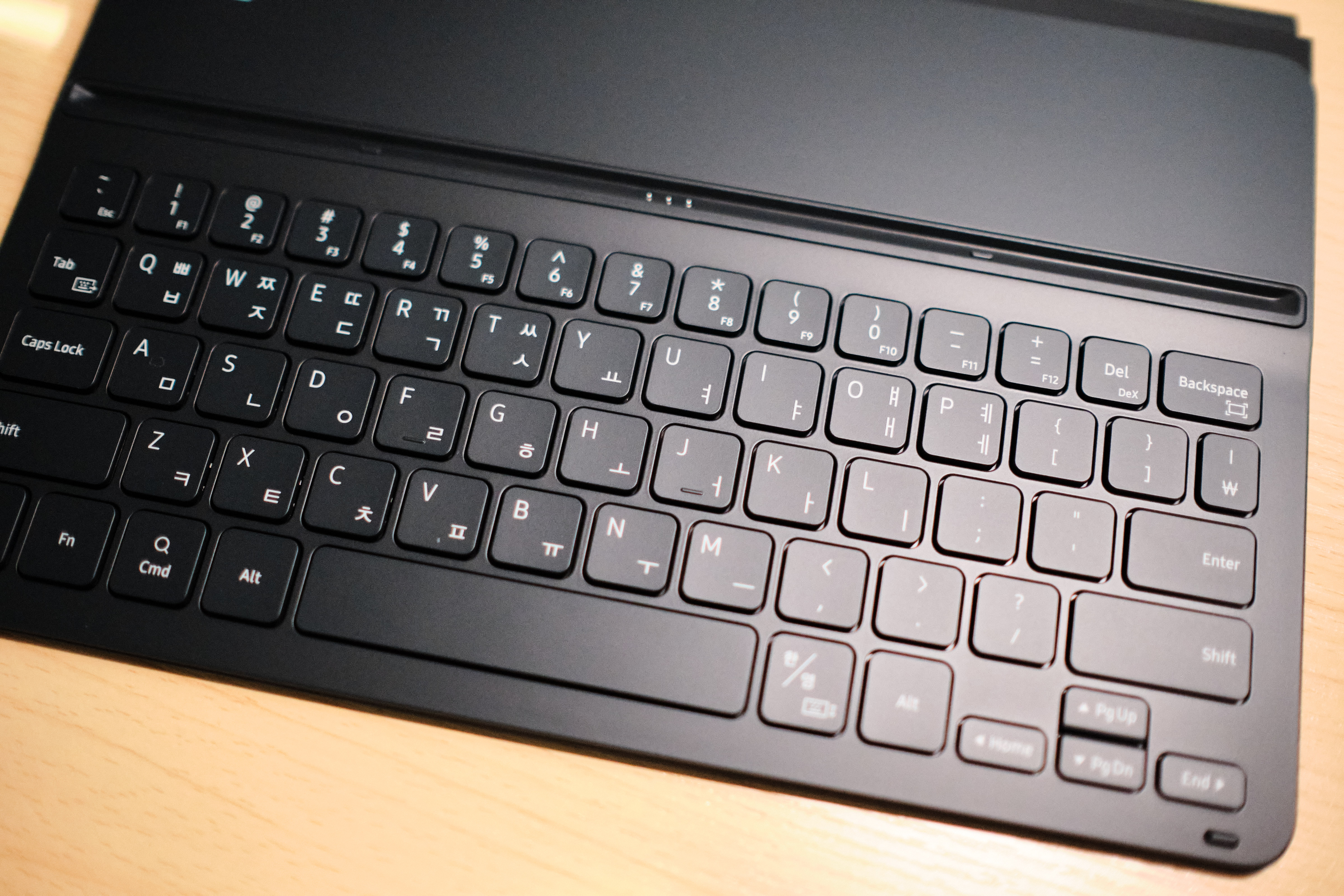 아무래도 11인치 태블릿에 맞추다 보니 폭은 다소 적으나 생각보다 금방 적응 하였습니다. 지는음 전혀 무리 없이 타입을 하고 있네요.