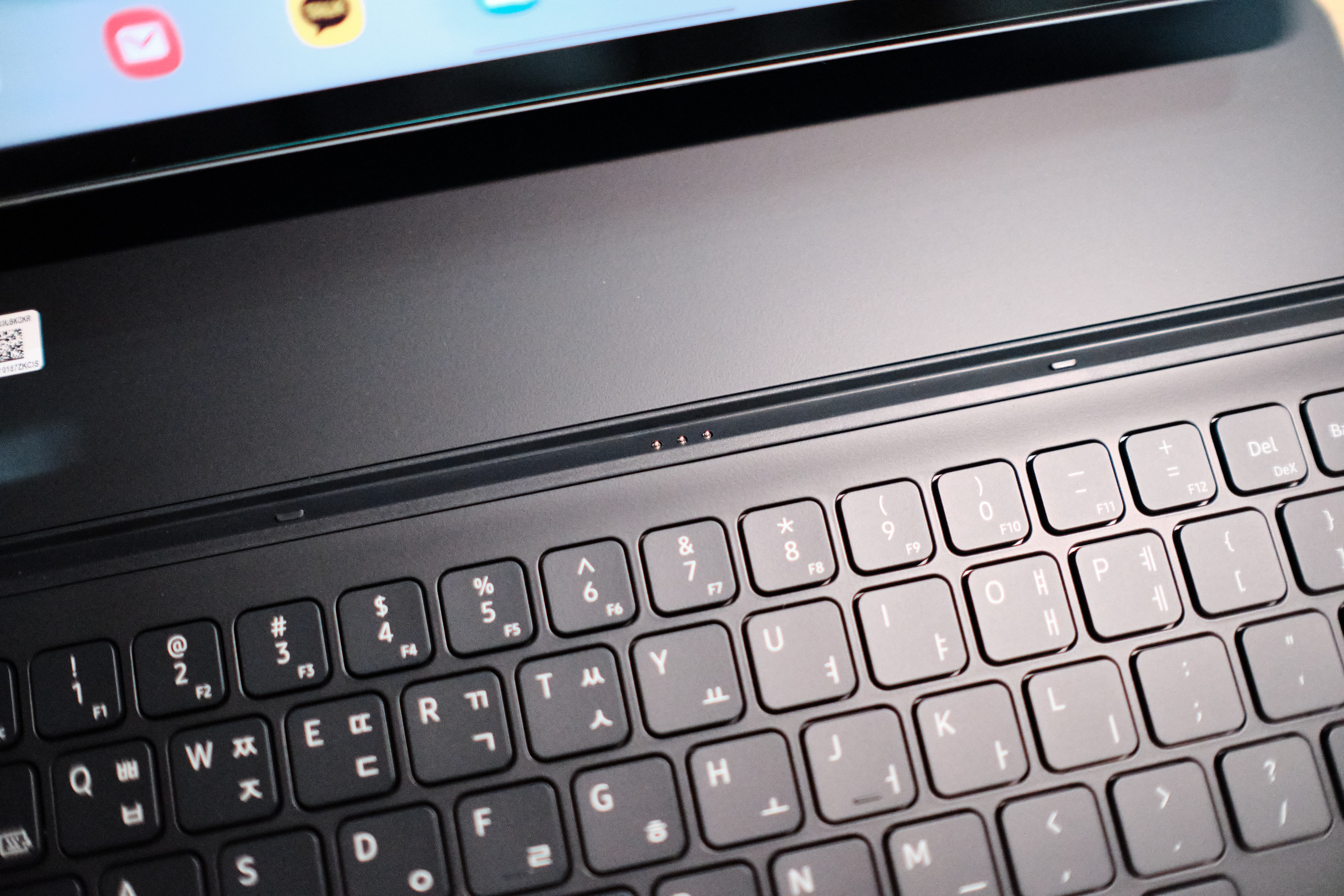 키보드 위쪽에 3개의 핀이 달려 있는데 이 부분이 탭과 연결이 되며 키보드가 연결이 됩니다.